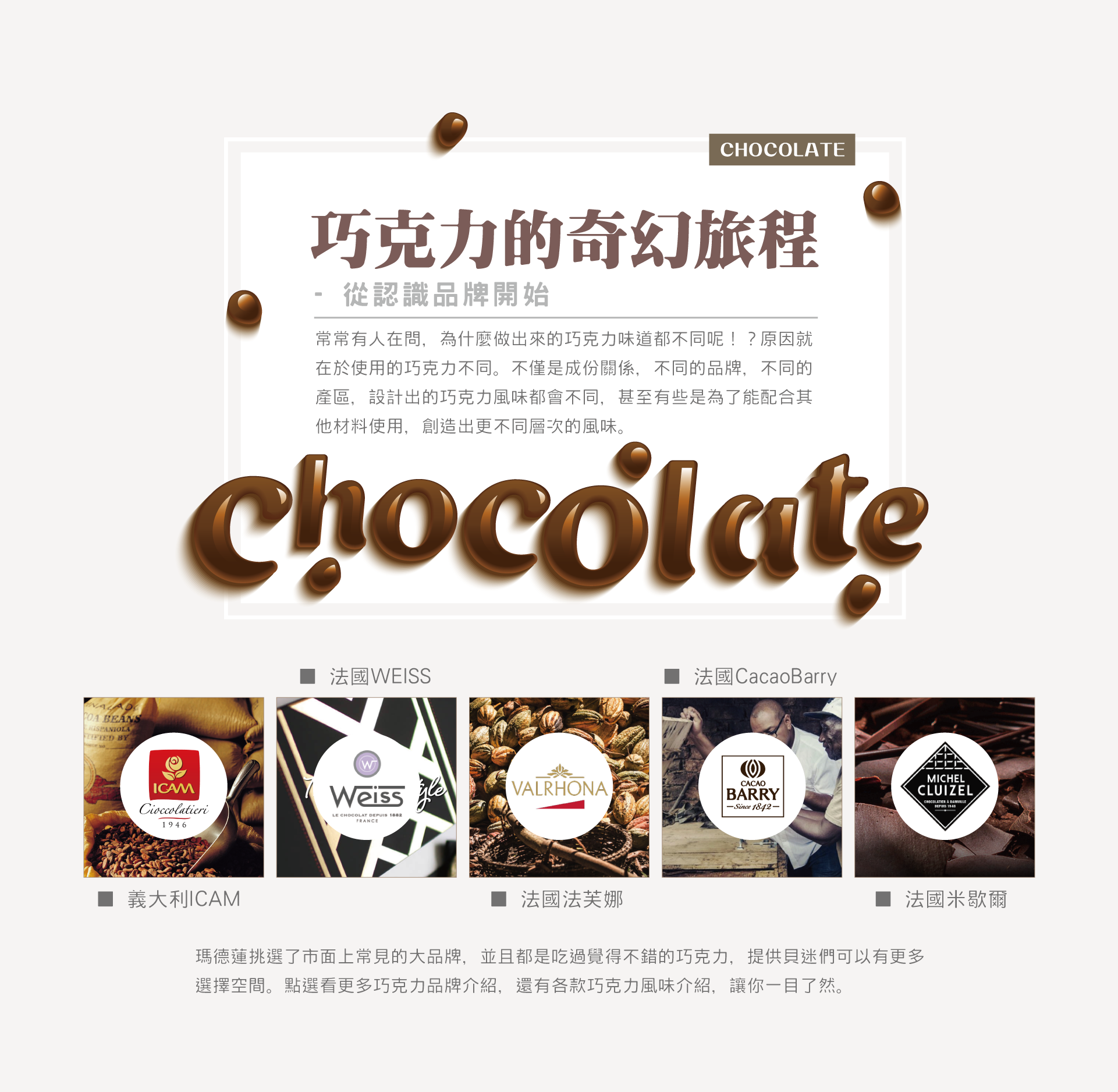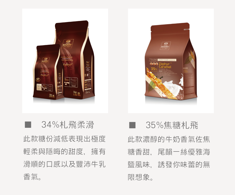 成立至今已近165年的歷史。選自全球各地可可豆產地及專業技術研發,使每一產地可可豆完整表現其特殊風味及芳醇!並推廣巧克力至醇風味及運用,並設有巧克力學院,以其專任技師教育來自各地烘焙從業人員,完整體驗各款可可豆風味並學習豐富專業知識,提供世界各地甜點主廚最佳巧克力產品選擇。全球的巧克力師、糖果師、麵包師以及糕點主廚選擇Cacao Barry® 品牌,因為它具有完美的技巧和出眾的口味和外形。