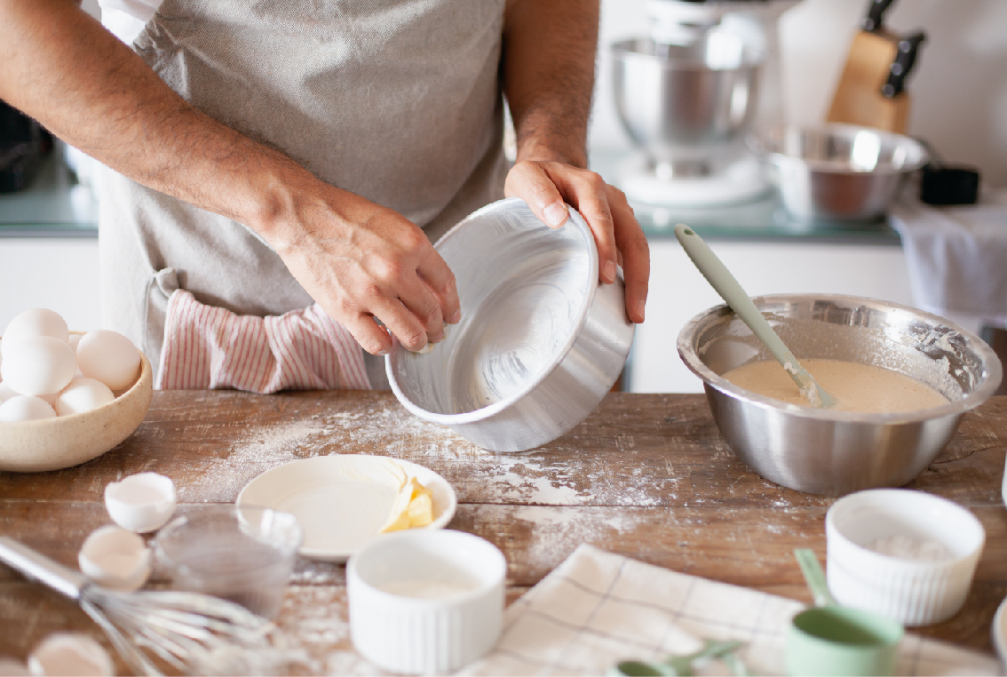 小蘇打粉一遇到酸性食材就會開始發生作用,使烘焙品膨大,所以不要讓製作時間太長,以免烘烤前就消氣了