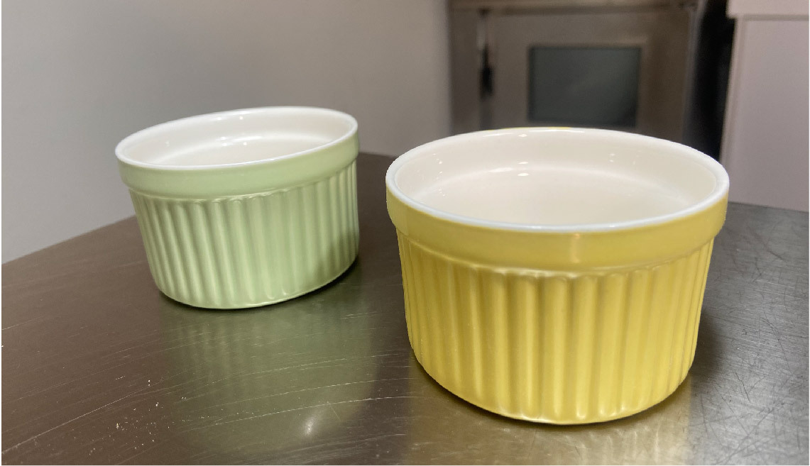 烤模的部分,蓮小編建議大家選擇種有點厚度的陶瓷杯,比較不容易因高溫而讓蛋糕一下都烤熟了,尺寸上我是使用7.5cm的大小