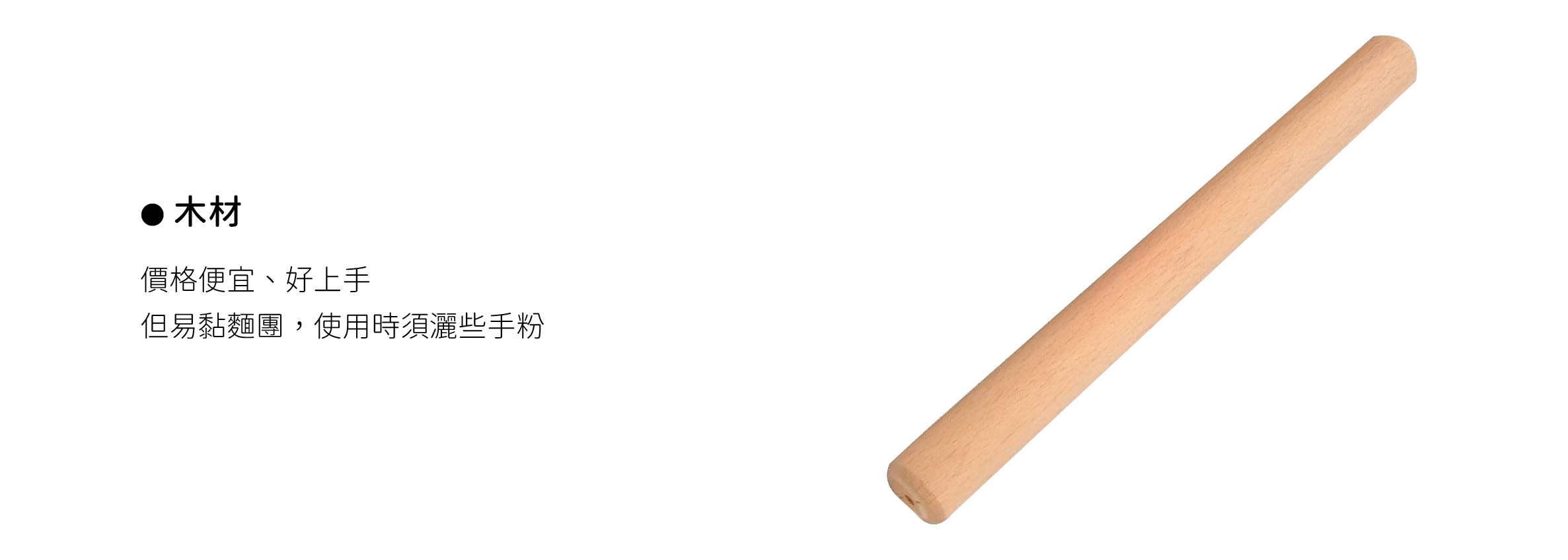 擀麵棍可不是越輕便越好呦~ 若重量太輕反而會讓你在擀麵糰時需要施加更多力氣,所以應選擇有點重量的擀麵棍更容易上手!
