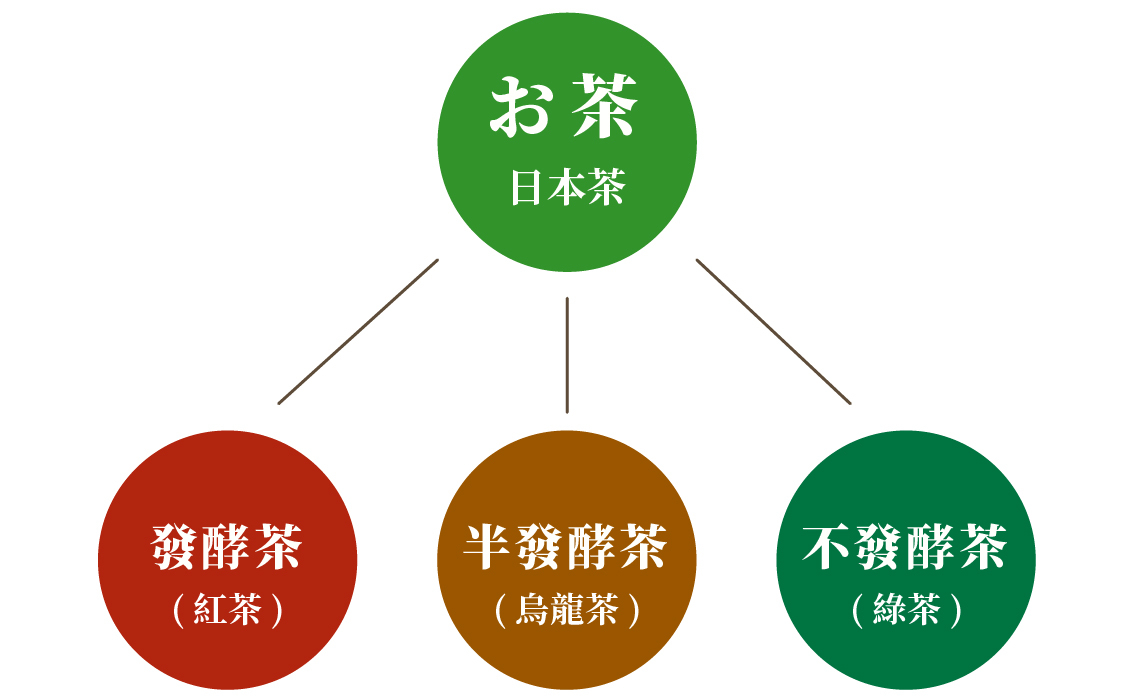 日本茶顧名思義就是在日本生產、製作的茶葉,其原料其實都是來自於一種叫做「茶樹」的植物,根據發酵的程度不同可分為紅茶、烏龍茶及綠茶。
