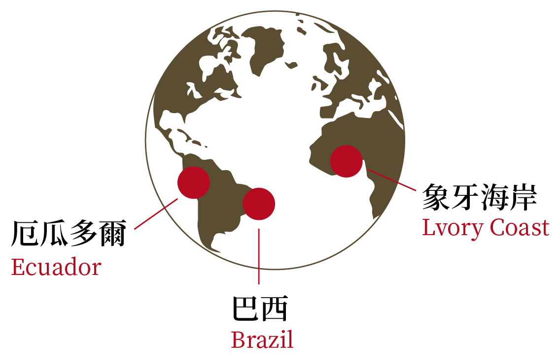 不過粉色可可豆不只在製作上很困難,連種植區域也有著嚴格的要求,像是在濕度、溫度及陽光上都會影響可可豆的顏色表現,經過多年研究後發現只有三個地方最適合種植粉色可可豆,分別是象牙海岸、厄瓜多爾及巴西