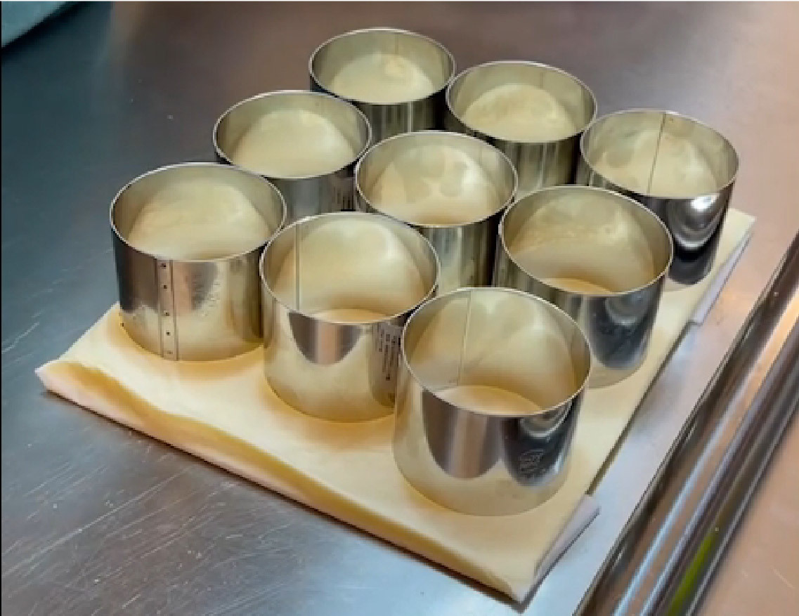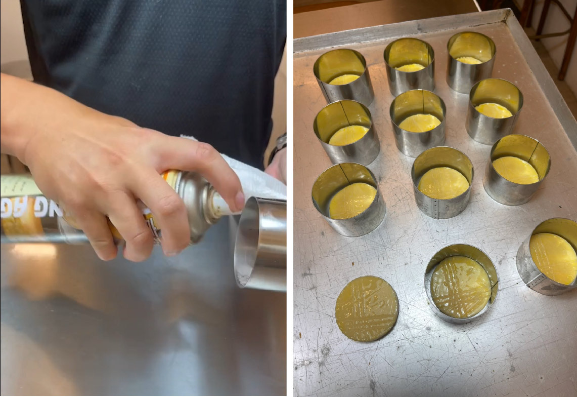 10) 烤環噴上烤盤油或抹上一圈奶油後套在每個小圓餅上