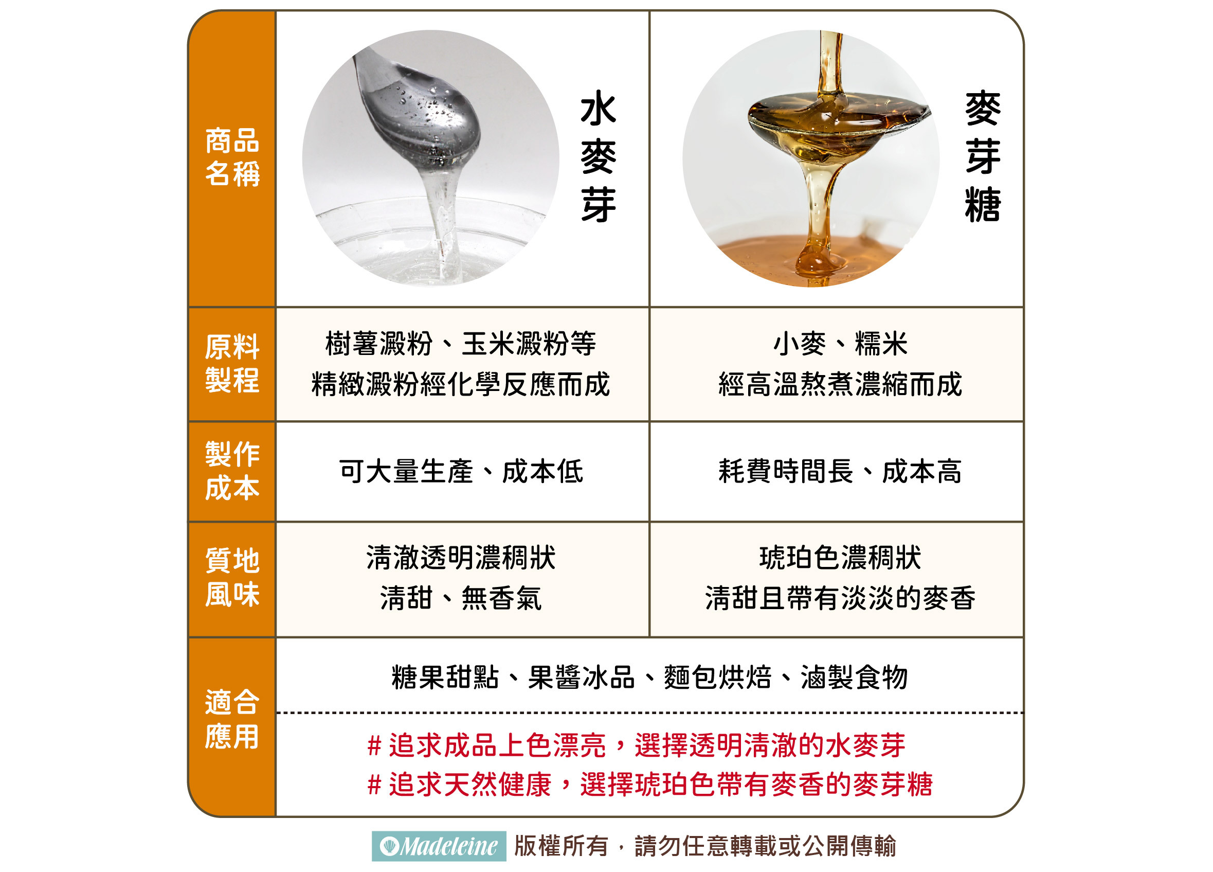 | 水麥芽與麥芽糖比較圖表