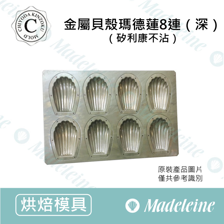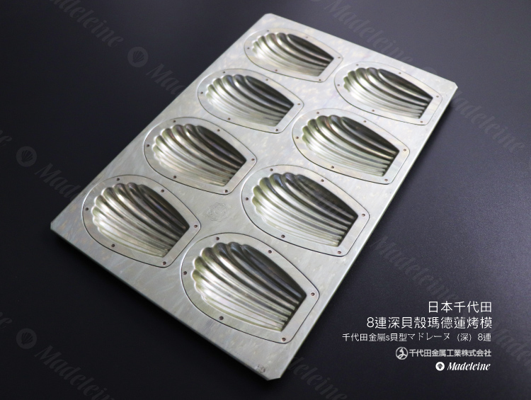 [ 日本千代田烤模] 千代田CHIYODA-8連深金屬貝殼瑪德蓮模 (不沾)